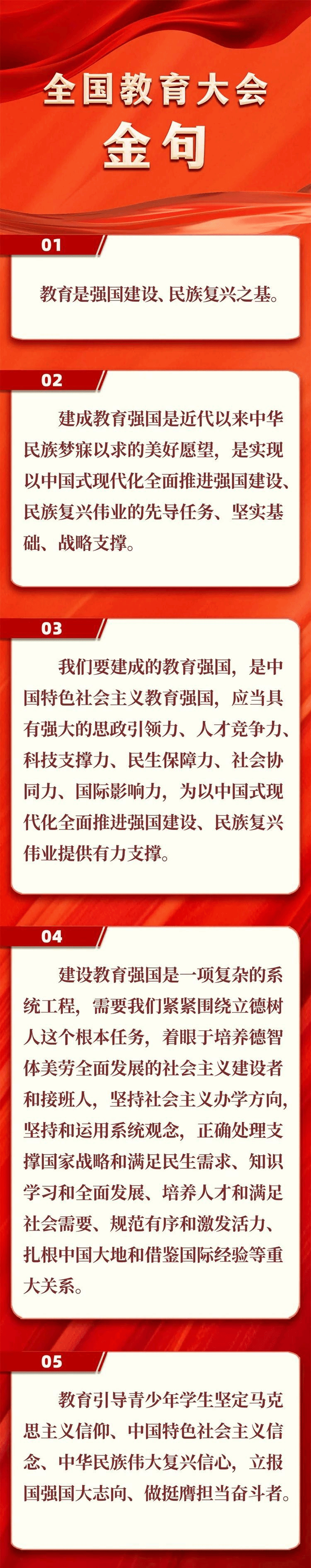 全国教育大会9日至10日在北京召开。中共中央总书记、国家主席、中央军委主席习近平出席大会并发表重要讲话。他强调,建成教育强国是近代以来中华民族梦寐以求的美好愿望,是实现以中国式现代化全面推进强国建设、民族复兴伟业的先导任务、坚实基础、战略支撑,必须朝着既定目标扎实迈进。