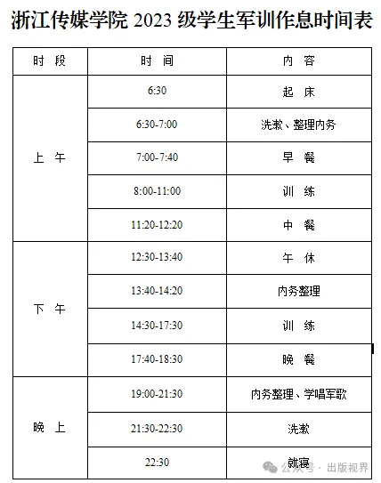 军训作息时间表