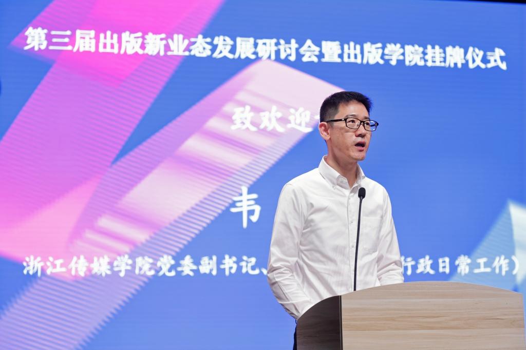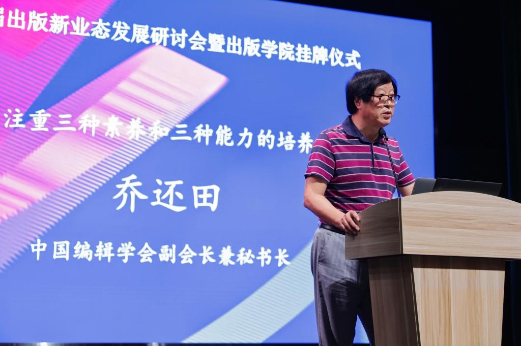 乔还田代表中国编辑学会致辞。他表示,浙江传媒学院有20年的出版教育积淀,为社会培养了大批优秀出版传媒人才。成立出版学院是浙传学科布局的一次重要拓展,是对新时代出版业发展趋势的敏锐洞察和积极回应。希望出版学院坚持守正创新,敢于突破传统束缚,积极探索出版教育的新模式新路径,不断提升出版人才培养质量。