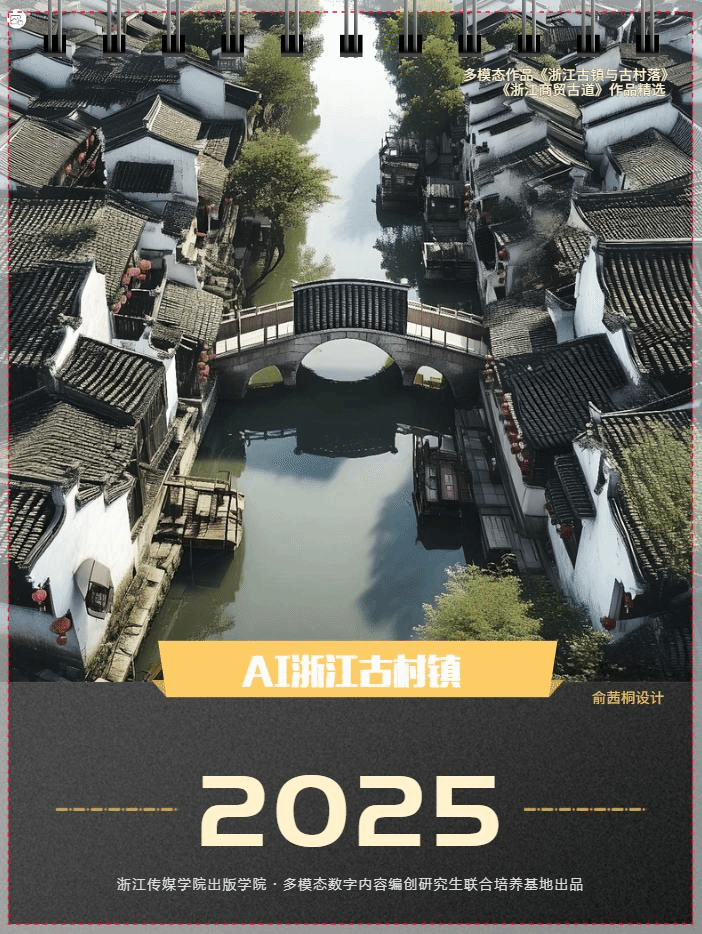 学生们把所学AI技术巧妙融入内容生产之中,将浙江商贸地理的深厚文化底蕴巧妙定格于挂历的每一帧画面。从杭嘉湖平原繁华商贸脉络的细致追溯,到沿海港口城市对外贸易变迁的生动呈现,再到山区特色商贸生态的深度挖掘,挂历的每一页都满溢着同学们对家乡商贸历史的诚挚敬意与不懈探索精神。