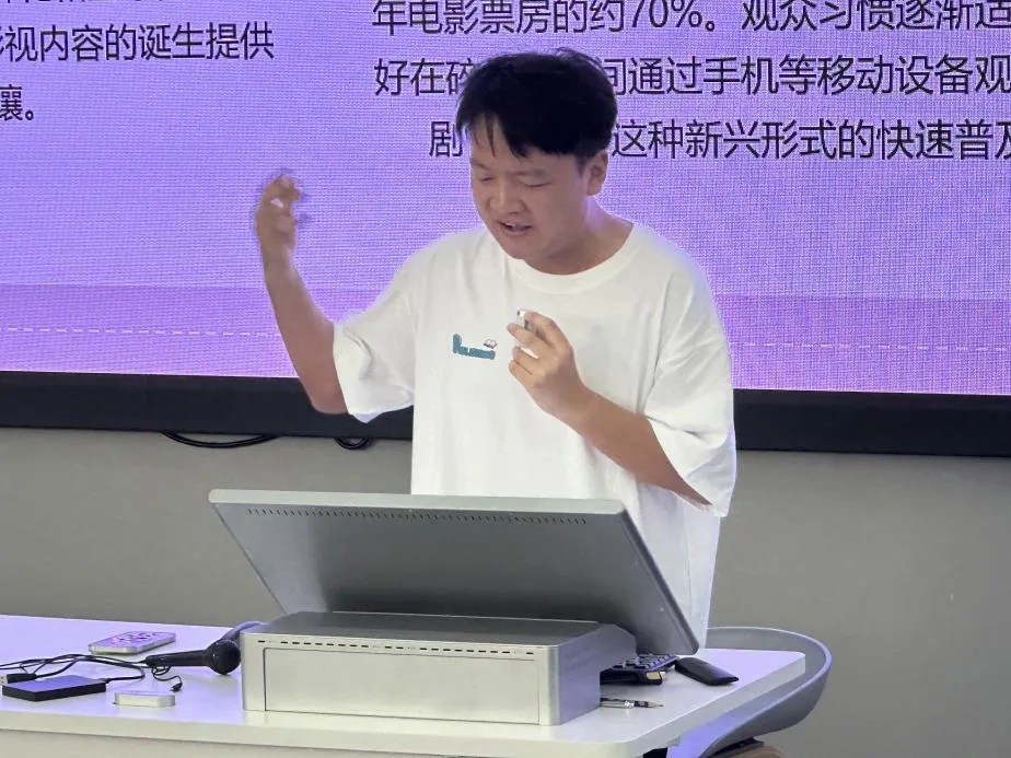 “当下,微短剧的势头正盛。”通过对临影厂的实地调研,姚塬小组在汇报时表示,海外出版、微短剧的制作、中国文化的传播,这些都是微短剧现在需要关注的方面。