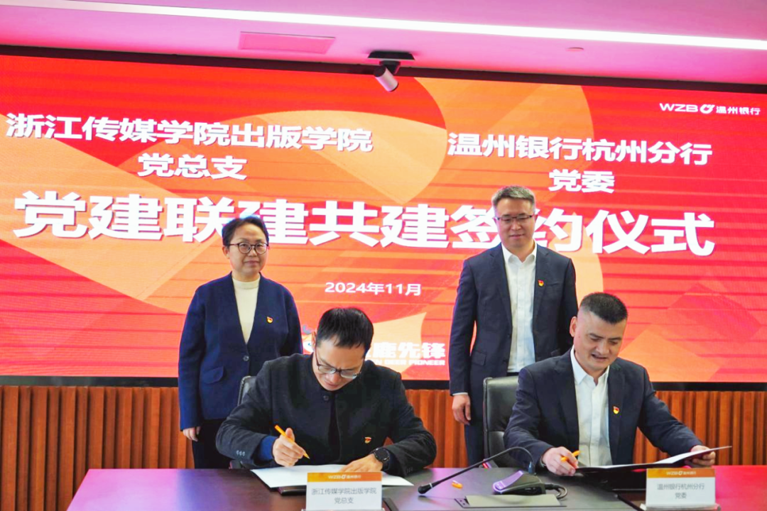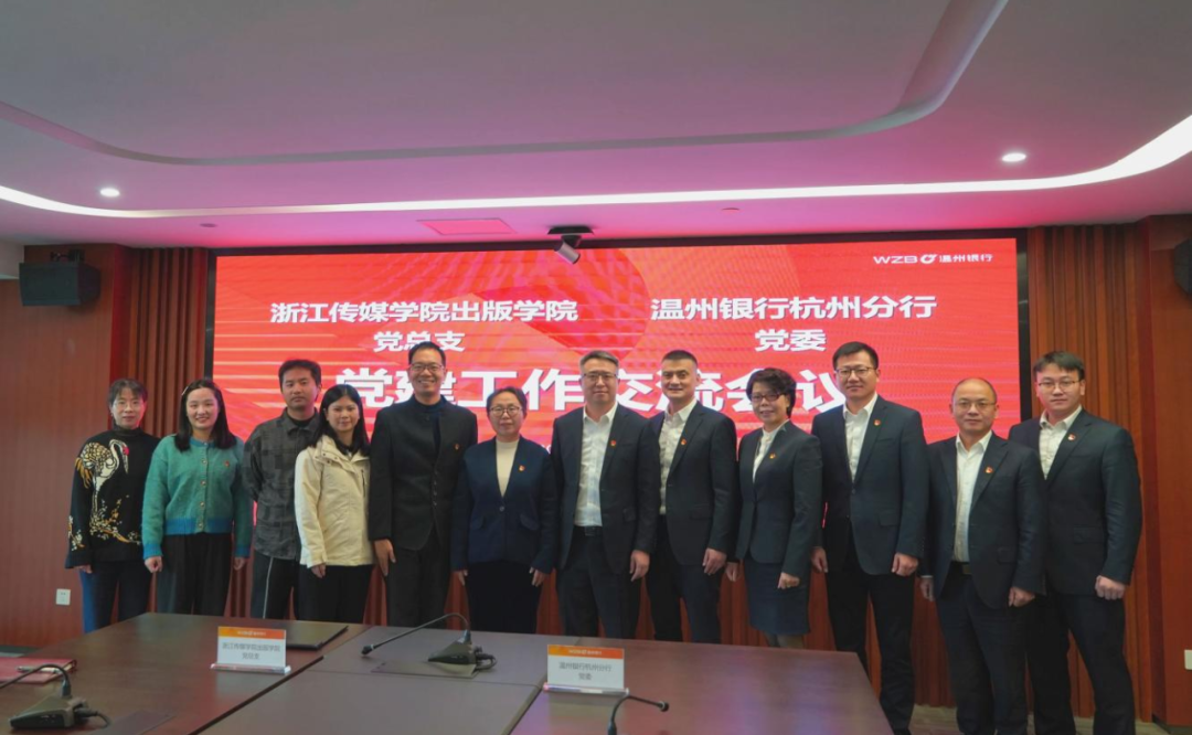 2024年11月21日,浙江传媒学院出版学院与温州银行杭州分行开展党建共建交流活动。出版学院院长崔波、党总支书记方宁,温州银行杭州分行党委书记洪益平,党委委员徐安、周佩静、陈盛勇以及相关部门负责人参加活动。