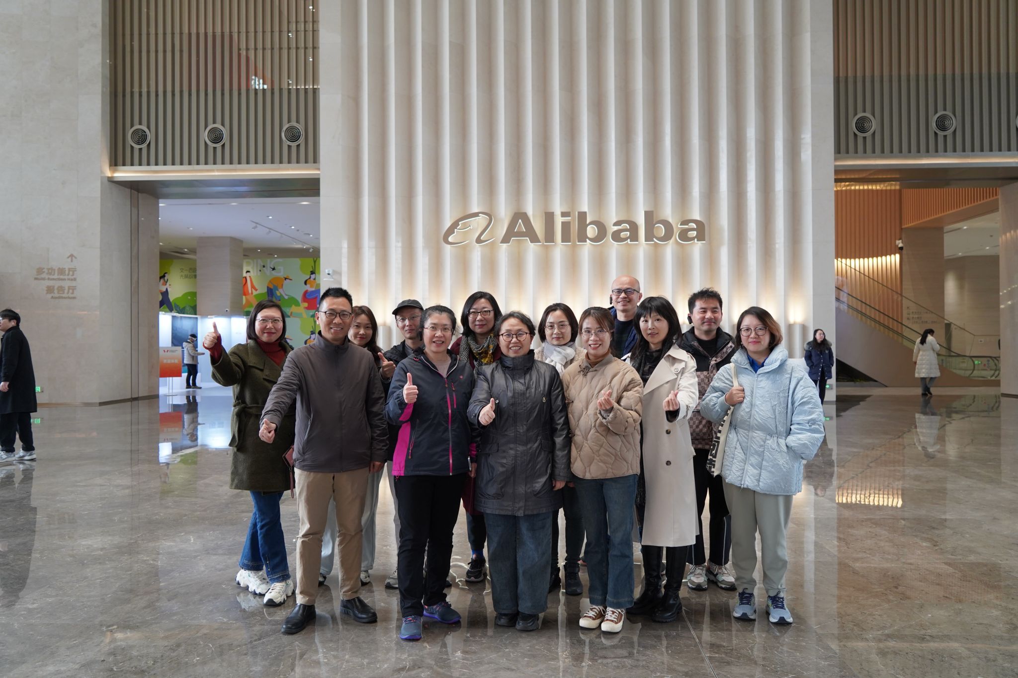 在阿里巴巴工作人员的引导下,党员教师参观了阿里巴巴访客中心,详细了解了阿里的企业文化以及公益项目。随后,双方围绕AI技术在出版行业的应用场景展开了深入讨论。