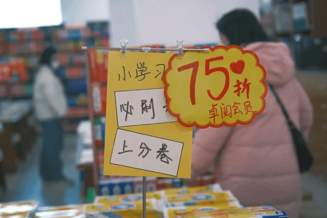 店员告诉我们,最近销量最高的当属《王朝霞·中国无封面活页教辅品类开创者》系列,语文活页默写和数学活页计算尤其受欢迎,10元一本的亲民价格成为家长们的最佳选择。此外,《五三天天练》和《小学必刷题》也凭借会员折扣优势,成为热销单品。