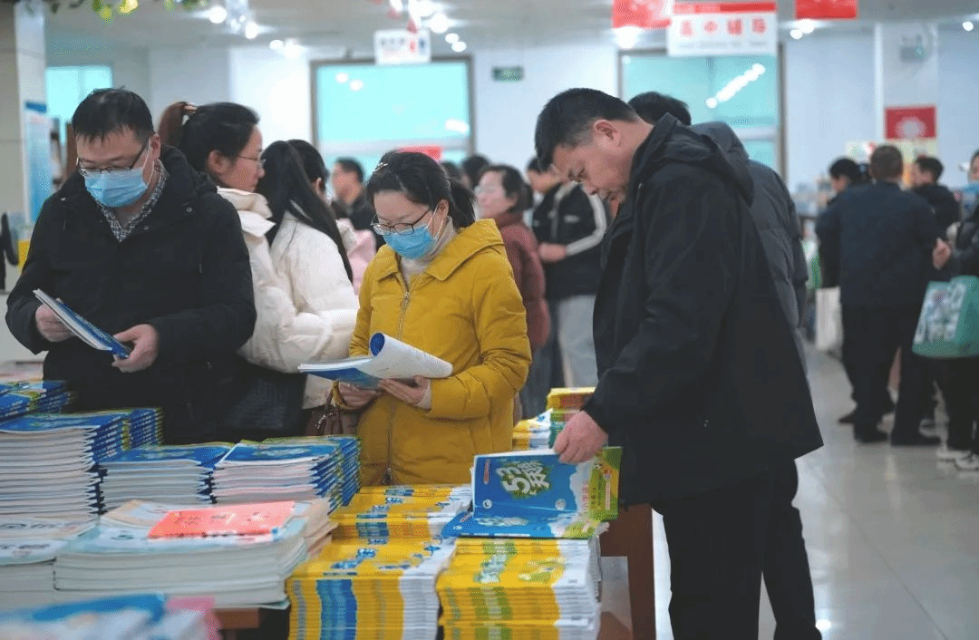在教辅区,随处可见或带着孩子看书,或比对参考书目的家长们。