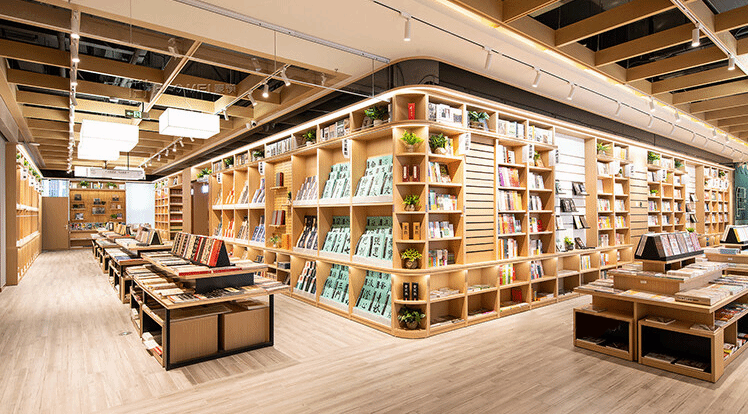 漫舟书城采用“螺旋递进式”动线,读者会从首层入口的文创市集区进入,经咖啡区过渡至二层传统文化区,最终导向三层教辅专区。这种设计借鉴了日本茑屋书店“书+X”模式,通过咖啡区与哲学典籍区的相邻布局,将功能性消费转化为文化体验。据统计显示,从咖啡区自然导流至文化区的转化率达38%,较传统动线提升15个百分点2。