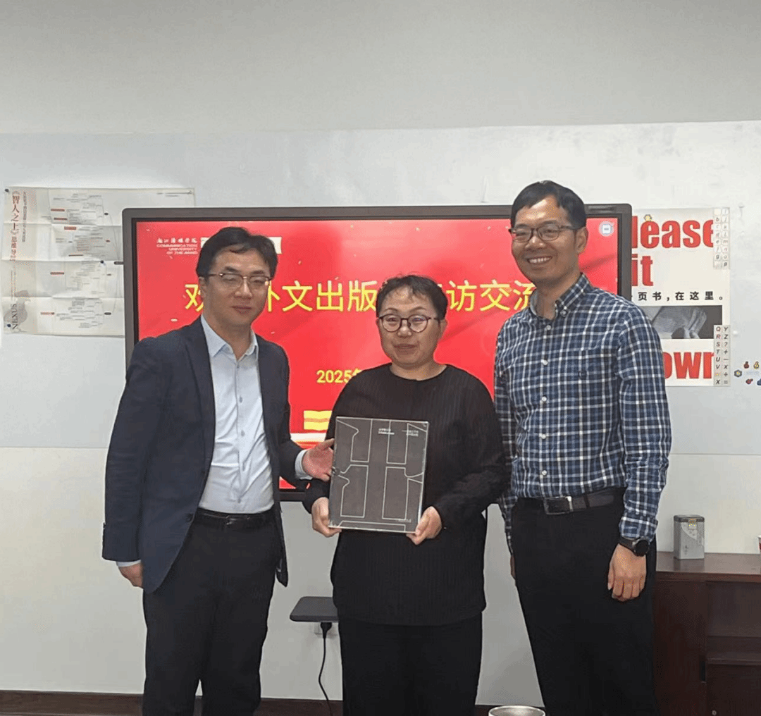4月28日上午,外文出版社副社长贾秋雅、营销中心发行区域经理吴希、对外出版研究室编辑辛安怡一行来访浙江传媒学院出版学院,出版学院院长崔波、党总支书记方宁、副院长隗静秋、数字出版系主任王武林等陪同并参加座谈交流。