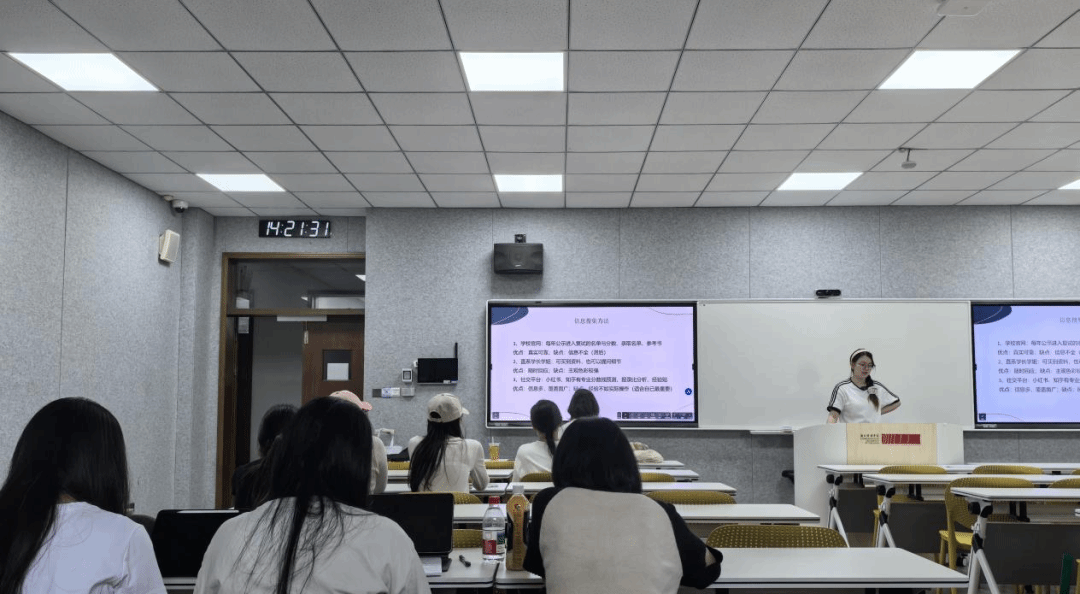 2025年5月13日下午,出版学院在桐乡校区教学楼113举办出版专业学生考研分享会暨出版拔尖创新人才特色班交流会,出版学院院长崔波教授、2021级编辑出版专业学生王佳樱和迟妍歌参加分享。