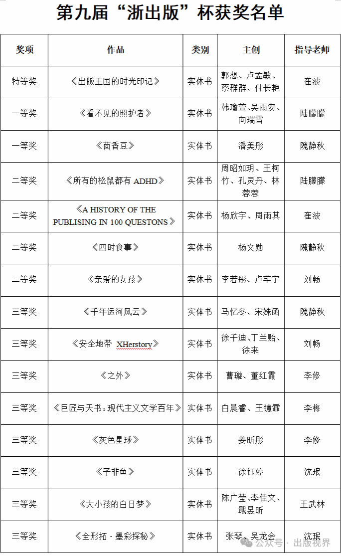 2025年5月22日下午2点,由浙江传媒学院出版学院主办的2025“浙出版”杯四年一本书优秀图书作品评审会暨颁奖典礼在浙江传媒学院钱塘校区图书馆二楼报告厅举行。本此作品展暨评审会的评委有浙江出版联合集团业务部原主任邹亮、浙江人民美术出版社总编辑况正兵、浙江教育出版社副总编辑屠凌云、浙江出版传媒业务部副主任吴山,出版学院院长崔波、副院长隗静秋等多位骨干教师及2021级编辑出版学全体同学参加了本次评审会,出版学院党总支部书记方宁主持会议。评审会现场共有38部纸质作品,涵盖了多类选题。