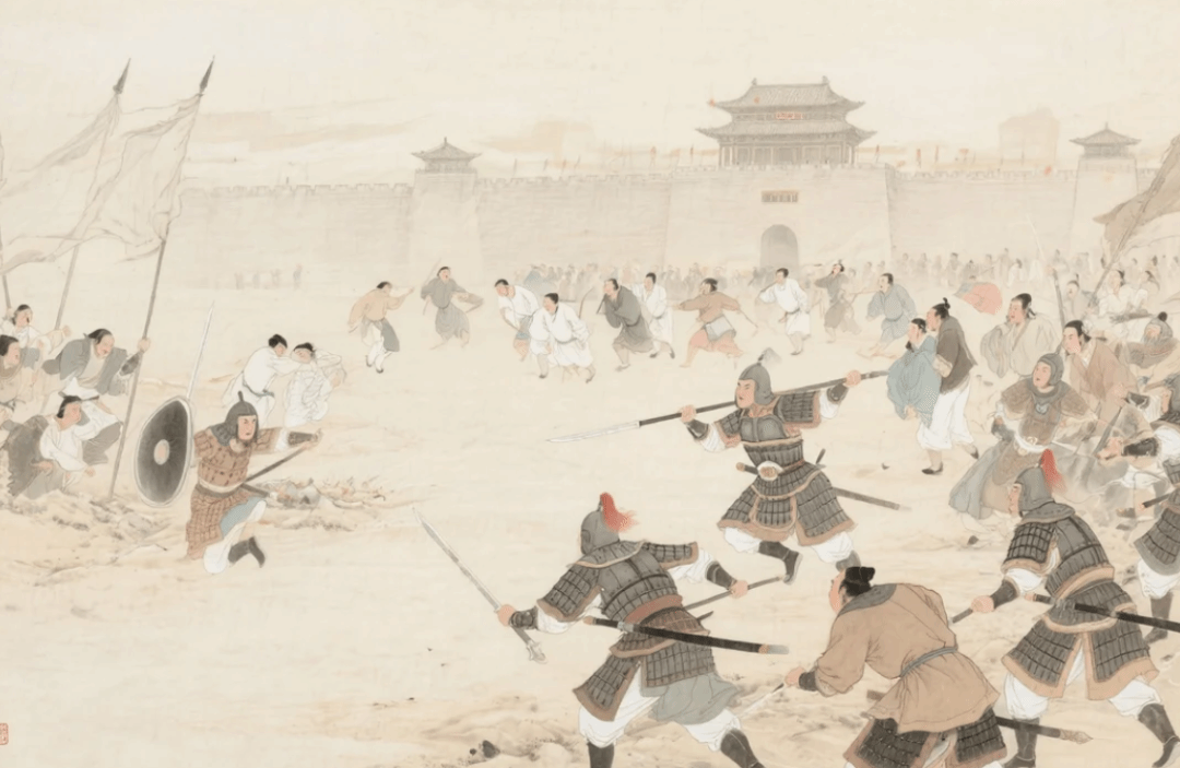 天宝十四载十一月,安禄山以“讨伐杨国忠”为名,在范阳起兵反唐,叛军势如破竹,迅速攻占洛阳,逼近长安。杨国忠仿佛蒋委员长附体,在战场上微操起来。他逼迫名将哥舒翰放弃固守潼关的稳妥策略,冒险出击,导致潼关惨败,长安门户洞开。见叛军直逼家门,杨国忠带着唐玄宗和杨贵妃放弃长安,前往蜀地。