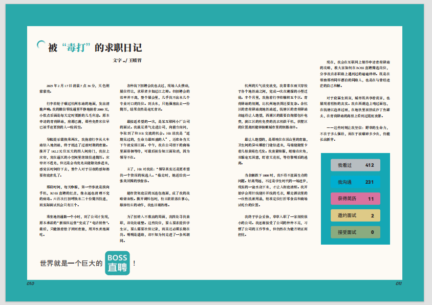我们希望这本mook能够成为杭漂人之间相互交流、相互鼓励的桥梁,也希望能够让更多人了解和关注杭漂群体。愿每一个在杭州漂泊的人,都能在这座城市找到属于自己的归属感和幸福感,在西湖的褶皱里茁壮成长。最后,感谢李梅老师在这一学期对我们的指导和帮助,感谢每一位接受我们采访、分享自己故事的杭漂人,也感谢我们小组三人的共同努力。