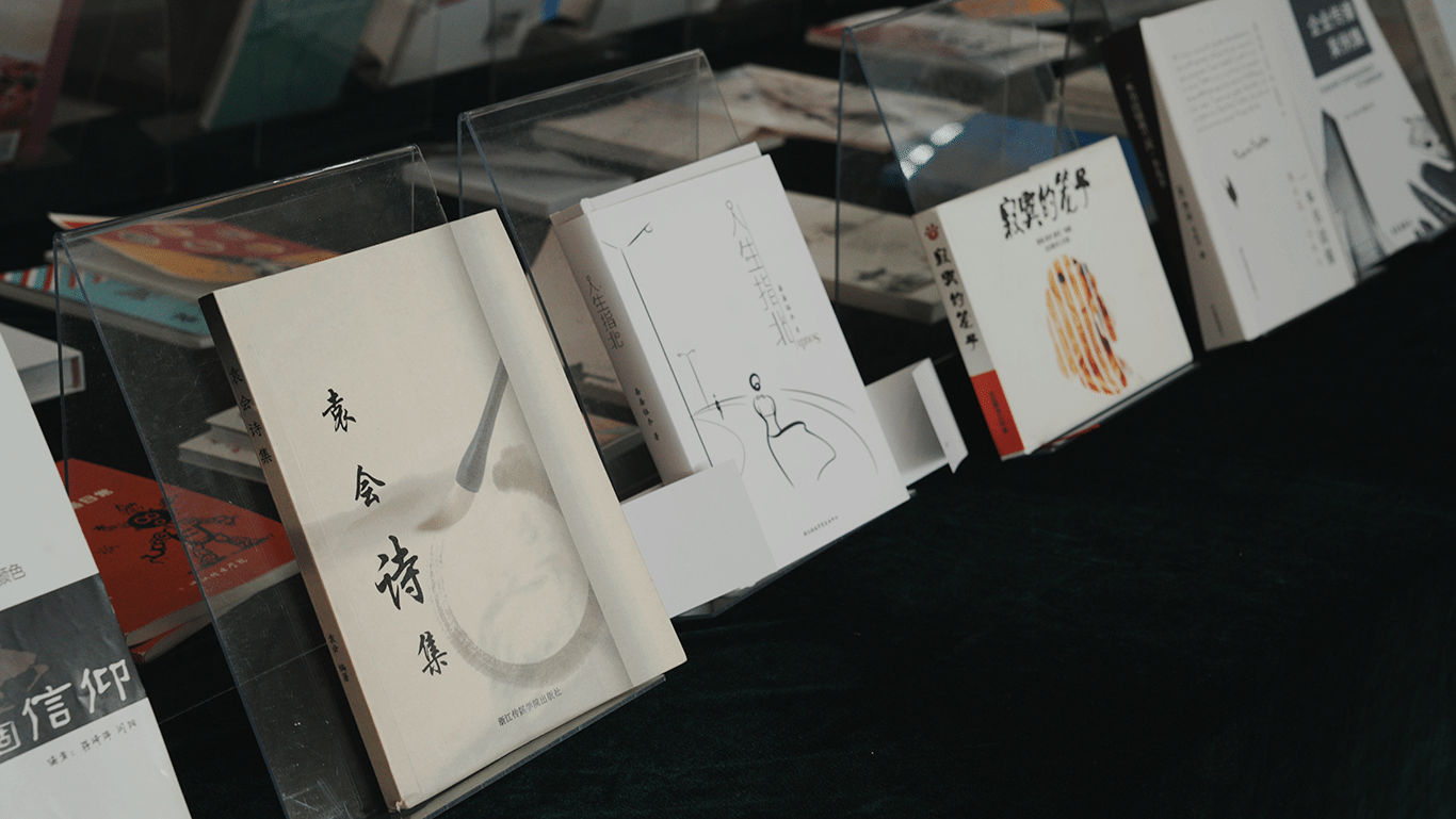 演播楼一楼,“四年一本书”回忆展中的书静静铺陈,等候着它的作者们。
