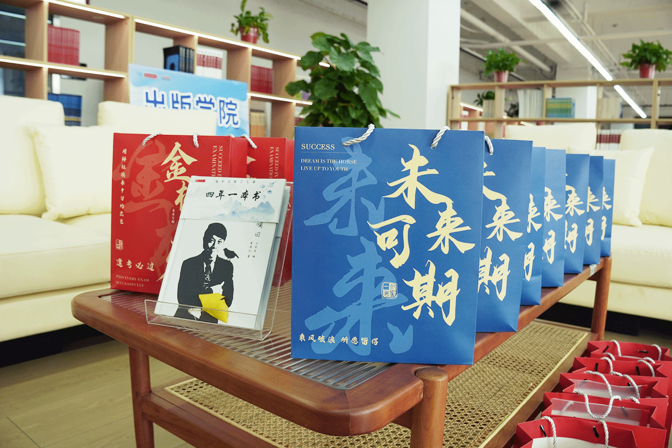 隗静秋副院长则借慰问礼品为大家祝福,“旗开得胜、未来可期、金榜题名、前程似锦”,既舒缓了备考的紧张氛围,也表达了学院对学子们的美好祝愿。