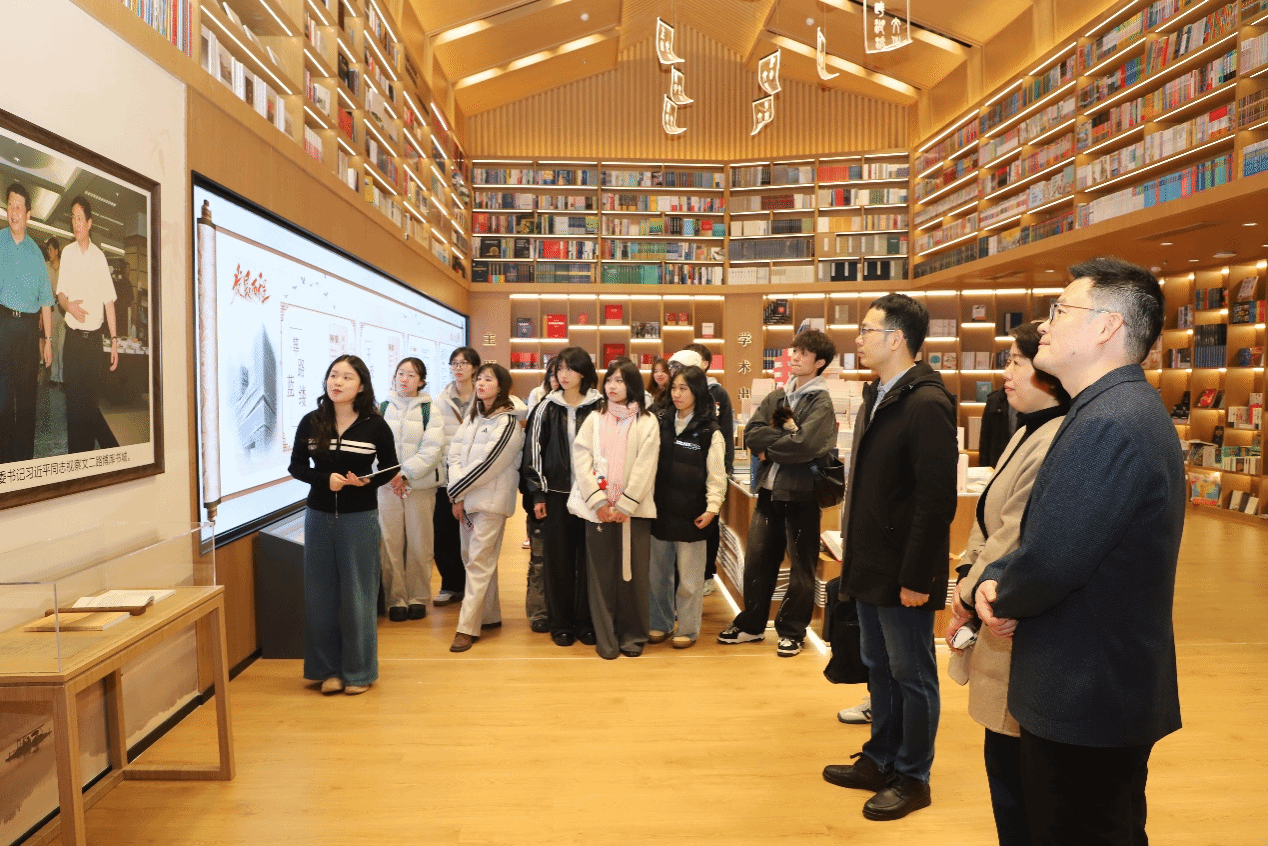 赵波社长对浙江传媒学院出版学院师生的到访表示热烈欢迎,并带领出版学院师生走进新华书店与浙江出版联合集团展厅进行参观学习。