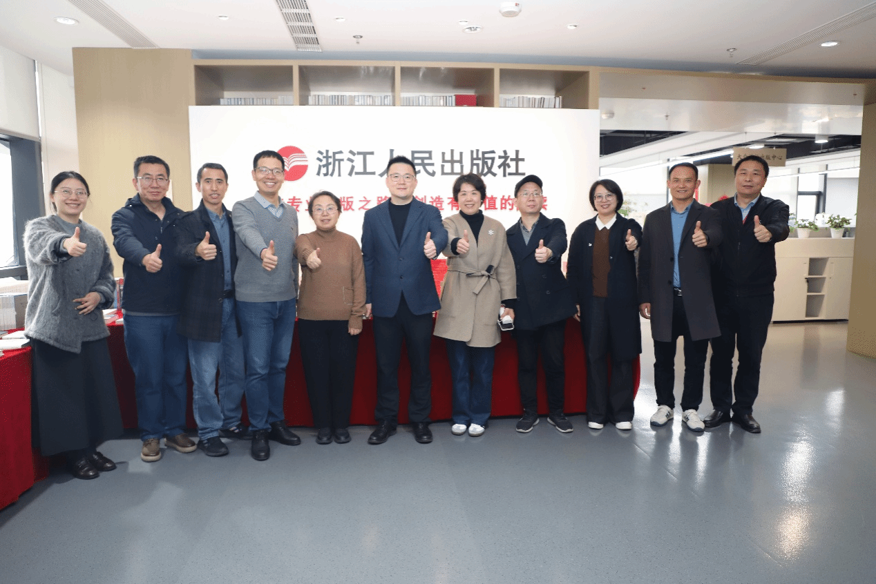 为深化出版产学研合作,搭建校企协同育人平台,2025年12月2日下午,浙江传媒学院出版学院院长崔波、党总支书记方宁、出版学院教师代表以及2025级全体出版专硕研究生赴浙江人民出版社开展专题调研学习。浙江人民出版社社长赵波,副总编郎振邦,副总编潘玉凤,副总编丁谨之,一级高级专员、浙江省级产业教授王利波等热情接待了师生一行。在调研期间,浙江传媒学院出版学院与浙江人民出版社共同举办了党建共建与产学研实践基地的签约仪式。