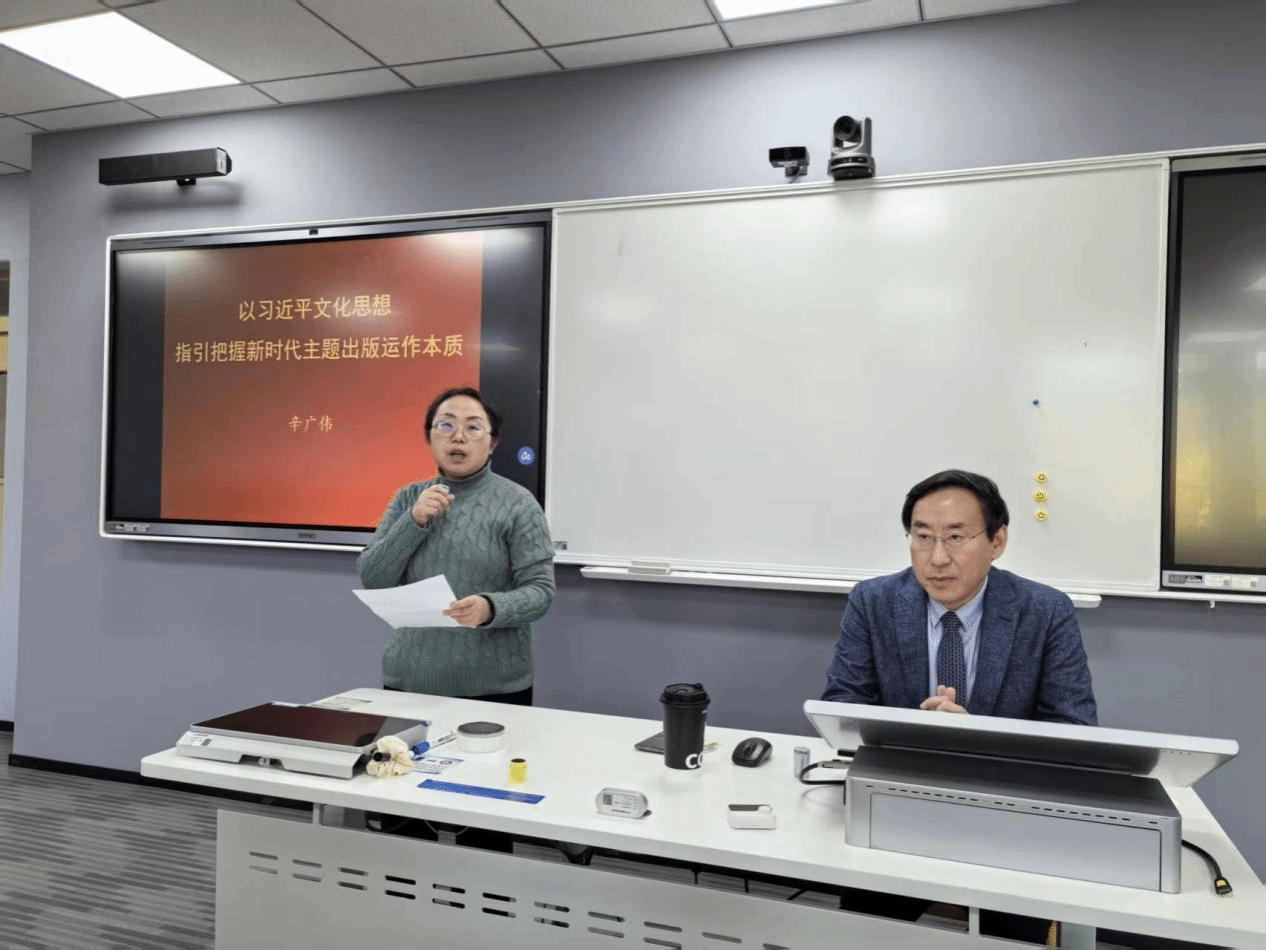 2025年11月26日下午,浙江传媒学院钱塘校区敬业楼212教室座无虚席,全国政协委员、中国版权协会副理事长、人民出版社原总编辑、中国传媒大学博士生导师辛广伟先生受邀做客浙传出版大讲堂,作题为“以习近平文化思想指引 把握新时代主题出版运作本质”的深度分享。媒体传播优化协同创新中心执行主任葛继宏、出版学院院长崔波、党总支书记方宁等出席,与出版学院本硕学生一起,共同聆听了这场兼具理论高度与实践温度的行业前沿报告。本次讲座由浙江传媒学院研究院主办,媒体传播优化协同创新中心和出版学院共同承办。