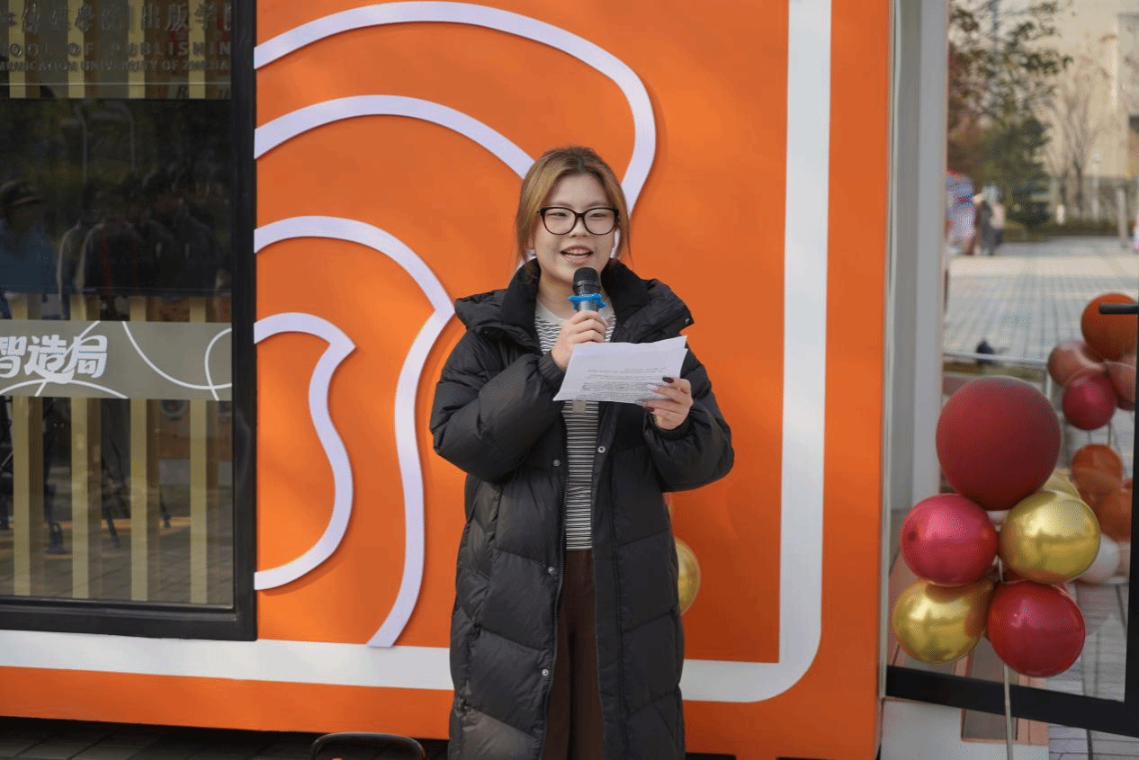 出版学院2023级本科生沈赛飞代表直播舱项目运营团队发言。她表示,学生团队将充分利用学校AIGC与国际出版实验室等专业资源与产业方提供的实践平台,将课堂知识转化为真实场景的运营能力。未来,团队将深耕校园场景,洞察师生情感需求,创作涵盖AI创意、校园故事、趣味科普等多维度的内容,坚持以优质内容作为连接品牌与用户的核心纽带。在这个“浙传学子所喜爱的第二空间”,她和团队将带着求真态度、创意思维和协作精神,全力投入这一创新实践项目。