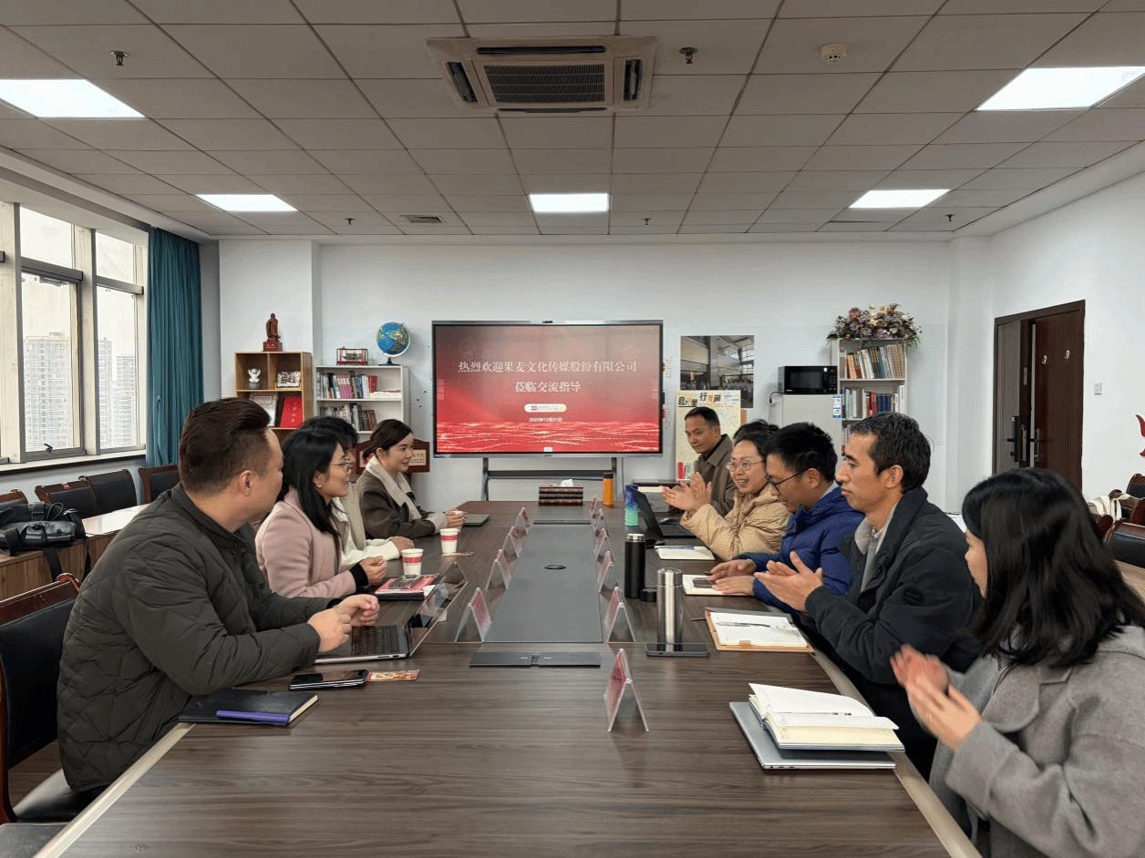 2025年12月31日,果麦文化传媒股份有限公司莅临浙江传媒学院出版学院交流指导。果麦文化传媒股份有限公司副总裁王誉、副总裁蔡钰如、数智部总监毛婷、数智部销售主管朱家玮,浙江传媒学院出版学院院长崔波、党总支书记方宁、副院长隗静秋及学院教师代表出席本次交流活动,双方围绕出版行业发展趋势、校企合作路径、人才培养模式创新等核心议题展开深入研讨。