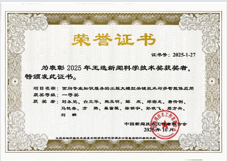 荣获2025年王选新闻科学技术奖
