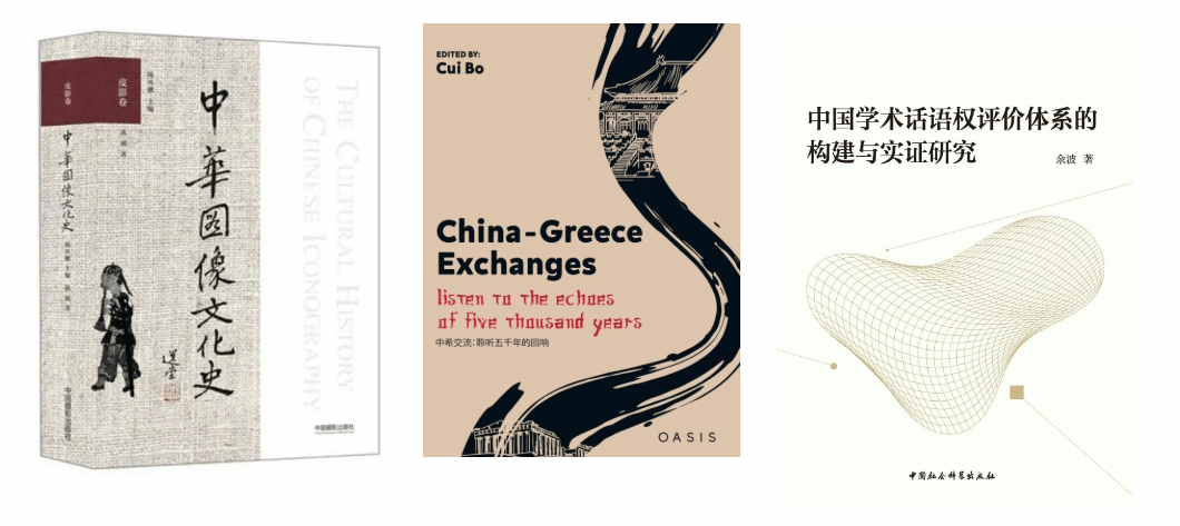 从左到右依次为:《中华图像文化史・皮影卷》《中希交流:聆听五千年的回响》《中国学术话语权评价体系的构建与实证研究》