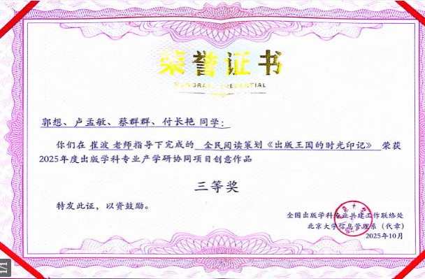 出版学子获2025年度出版学科专业产学研协同项目创意作品三等奖