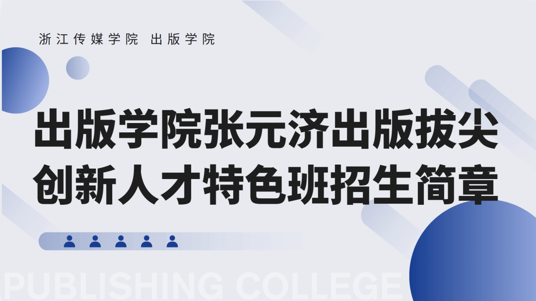 为弘扬张元济先生“出版报国”精神,适应新时代出版业“跨界融合、数字转型、国际传播”的发展趋势,浙江传媒学院出版学院与商务印书馆进行深度合作,特设“张元济出版拔尖创新人才特色班”(以下简称“张元济班”)。本班通过“人文底蕴+国际对标+本硕一体+产学研用”四位一体培养体系,造就具有家国情怀、文化底蕴、数字思维、国际视野的复合型出版领军人才。