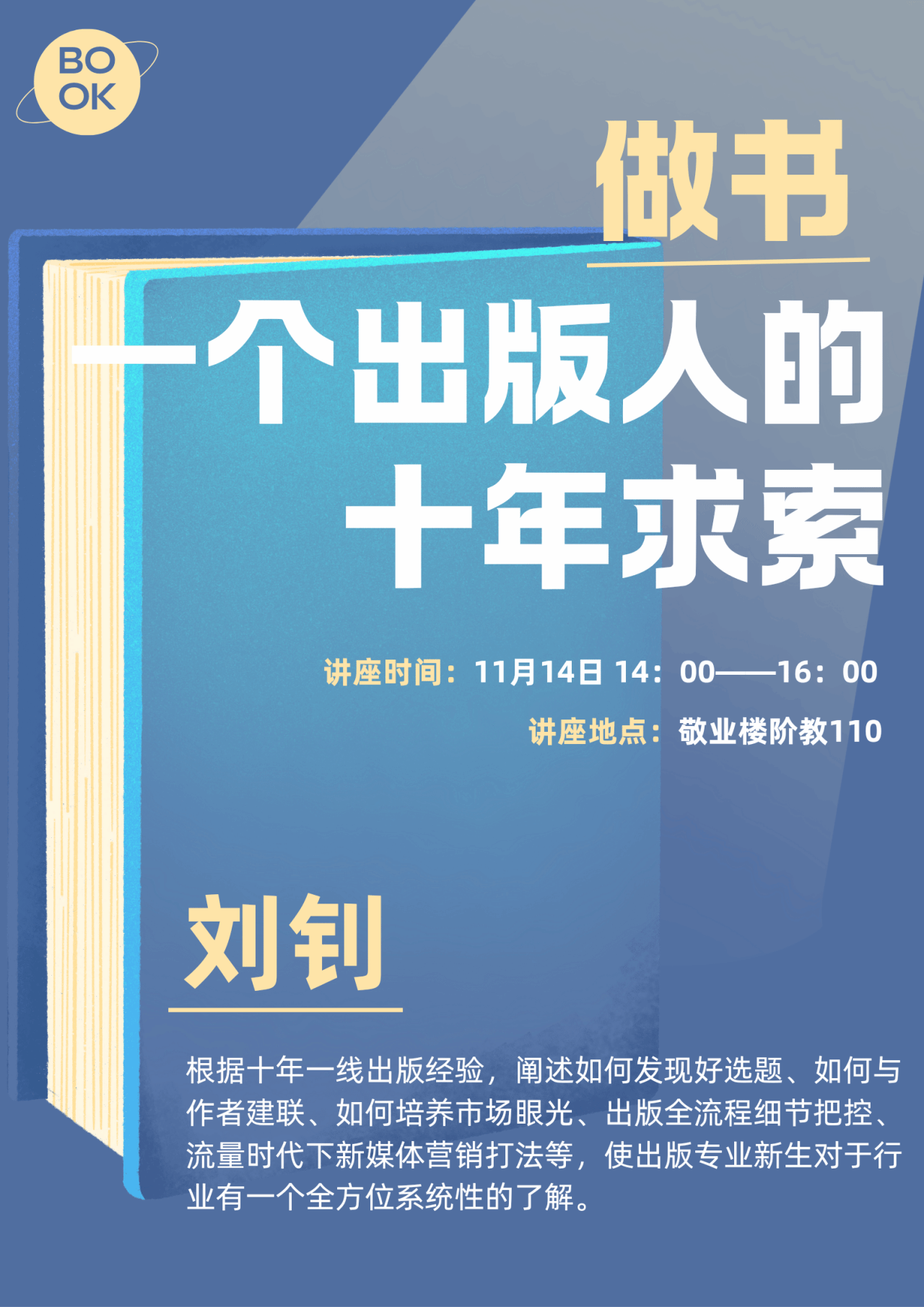 根据十年一线出版经验,阐述如何发现好选题、如何与作者建联、如何培养市场眼光、出版全流程细节把控、流量时代下新媒体营销打法等,使出版专业新生对于行业有一个全方位系统性的了解。