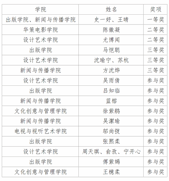 经大赛评审委员会从创意性、文化内涵、制作水准、传播互动等多个维度进行综合评审,现将获奖名单公布如下: