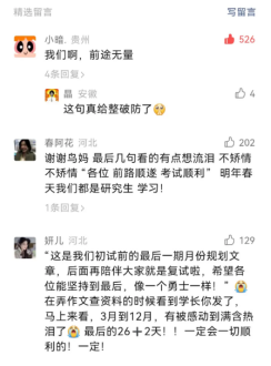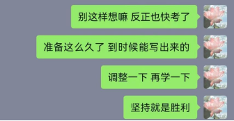 第三关,维稳——心态很重要。“真的,后期压力很大的时候,我走在路上都能哭出来。”回想备考过程中印象最深刻的画面,刘春英如是说。11月份临近初试,任务越来越紧迫,刘春英只能“逼”自己多学一点,再多学一点,每天将近十小时的高强度复习使她变得异常敏感。有天晚上离开图书馆,在去往食堂的路上,她刷到一条激励考研的评论:“我们啊,前途无量。”顿时,满眼热泪。她清楚,无论结局如何,坚持到此刻的自己已经问心无愧,剩下的就交给时间,交给为此付出所有努力的自己。