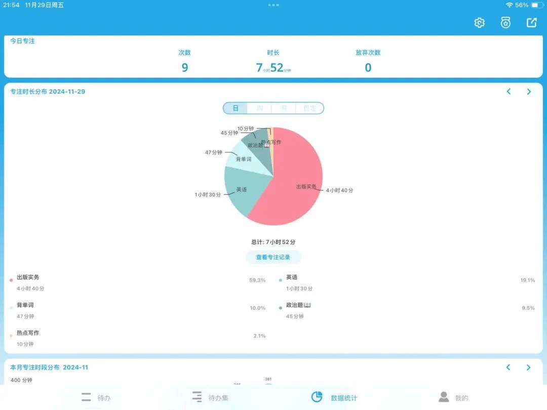 图1-潘美彤使用番茄钟记录学习时间的截图
