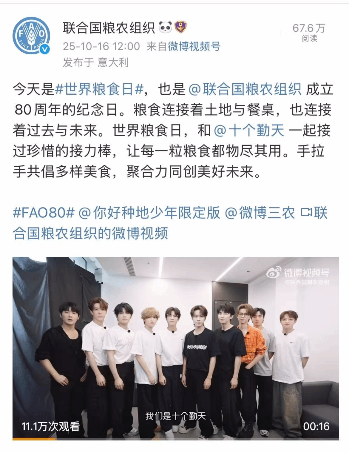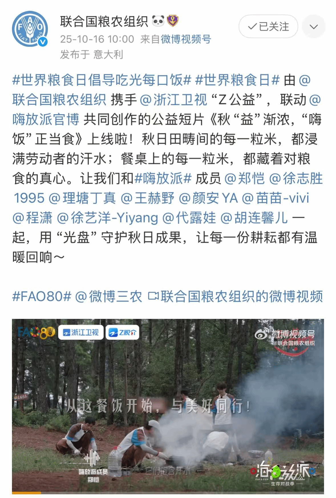 2025年粮农组织关于世界粮食日的宣传微博