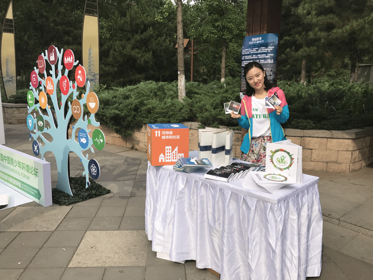李美茜在联合国环境署实习时,支持世界环境日活动宣传