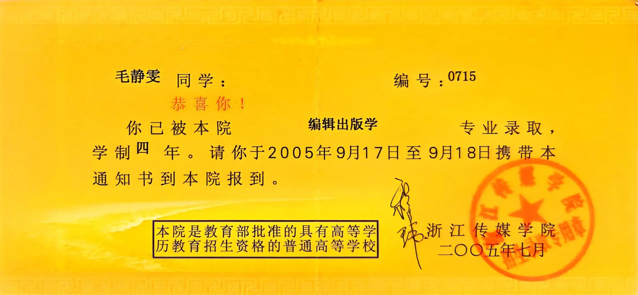 珍藏的大学录取通知书
