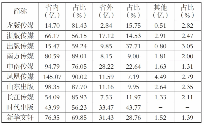表2 2022年部分出版传媒上市公司营业收入(区域结构)①