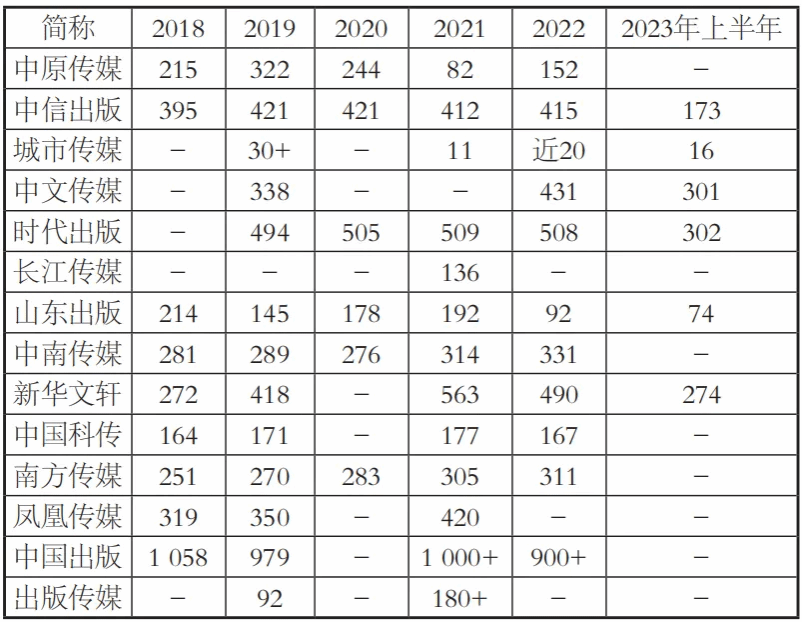 表4 2018—2023上半年部分出版传媒